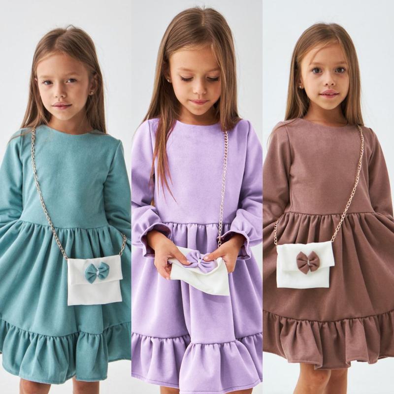 Изысканное платье для ваших красавиц Идеальный вариант для любого праздника, очень удобен. Высокая качественная ткань, приятная на ощупь. На рукавах есть резиночка, хорошо тянется, сзади есть пуговица, в комплекте идет с сумочкой. Брошь в комплект не входит ! Тканина: замша диагональ Производитель: Украина 🇺🇦 ЗАМЕРЫ ⤵️ +/- 1-2см!!! р.98- длина 55 см / рукав от плеча 37см/ПОГ 28 см р.104- длина 58 см/рукав от плеча 39см/ПОГ 28 см р.110- длина 63 см/рукав от плеча 40см/ПОГ 30 см р.116- длина 64 см / рукав от плеча 40см/ПОГ 30 см р.122- длина 67 см / рукав от плеча 43см/ПОГ 30 см р.128- длина 69 см / рукав от плеча 44см/ПОГ 31 см