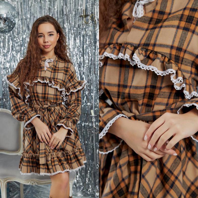Таня Арт 3920 Неймовірно гарненьке платтячко З мереживом та рюшами У талії є резинка Під поясок Тканина напівшерсть Якість супер Зріст/довжина/довж. від плеча до талії/пог/рукав від горловини похибка+-2см 140-146/75/38/48/55-1шт 146-152/77/38/49/57-1шт