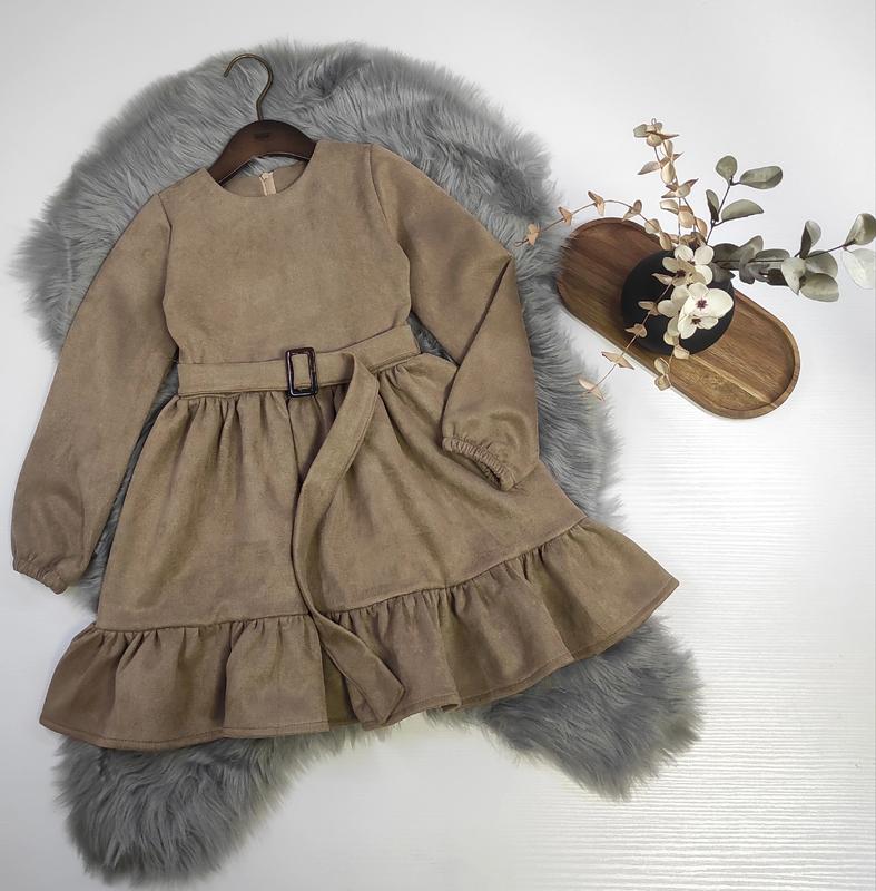 🧡В наличии 🧡 НОВИНКА👑 Стильное платье с поясом Тканина замш Цена 675 грн замеры: длина платья/длина рукава от плеча/обем 134-67/46/33 140-69/48/35 146-72/50/36 152-75/52/37 158-78/54/39 +-2см 134-1шт 140-1шт 146-1шт 152-1шт 158-1шт