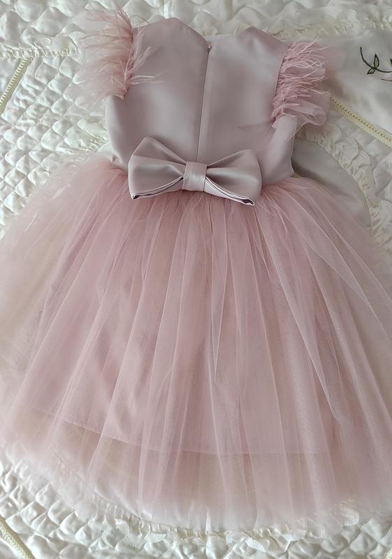 Пышное платье для девочки. Подходит на рост 110-116см (116 предел) Внешне дорогой матовый атлас, в середине приятная на ощупь подкладка. Качество материалов и пошива очень хорошее и значительно превышают стоимость. Бантик снимается. Цвет розовая пудра.