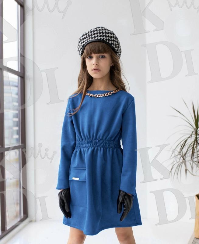 Яскрава сукня для юной леди ткань замш диагональ украшена цепочкой в поясе на резинке замеры-длина/пог/рукав 128-65/33/44 134-68/35/46 140-70/37/49 146-72/39/50 +-2 см
