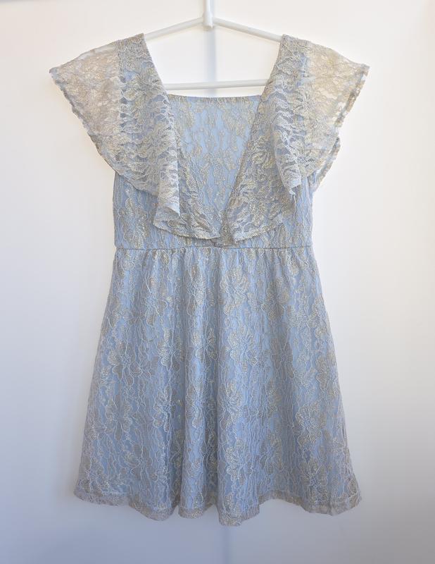 Нарядное гипюровое с подкладкой праздничное платье девочке Yuni Girl р. 140 (9/10 лет). С люрексовой нитью. Цвет нежно-голубой. Состояние отличное. Верх 100% полиэстер. Подкладка 94% полиэстер, 6% эластан. длина 74 см полуобхват груди 37 см полуобхват талии 32 см