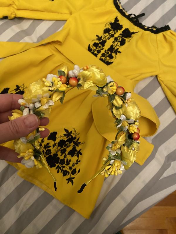 Платье вышиванка, из габардина, нарядили пару раз, состояние идеальный, приобретали как на 110 рост, хотя малая была 98), одета еще на 104 см( но уже вплотную). Сидит норм, а вот надевать уже тяжелее, поэтому продаем, все размеры с сантиметром на фото. Цена вместе с венчиком. Фотки как сидит на ребенке, могу в кроватку бросить, программа что-то не пропускает