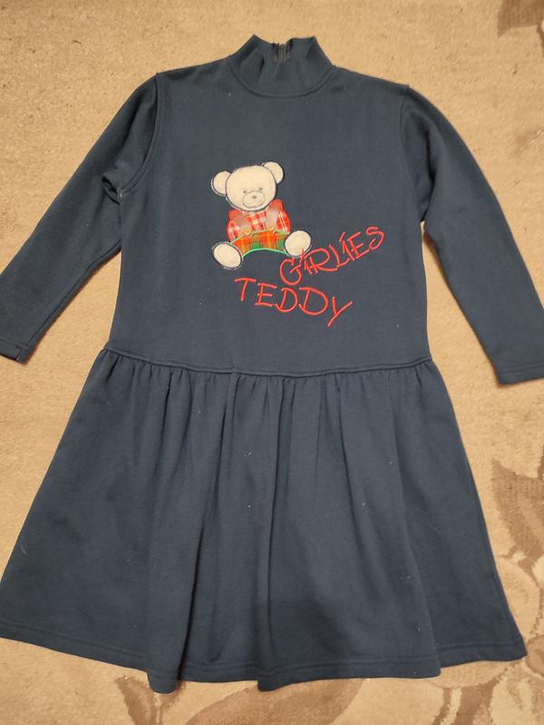 Гарне платтячко синього кольору, на флісі, з нарядною аплікацією медведиком. Дивіться заміри На зріст 140см напівобхват по лінії грудей 43см плечі 35см довжина 82 см рукав 44см Відповім на ваші питання Відповім на ваші питання.
