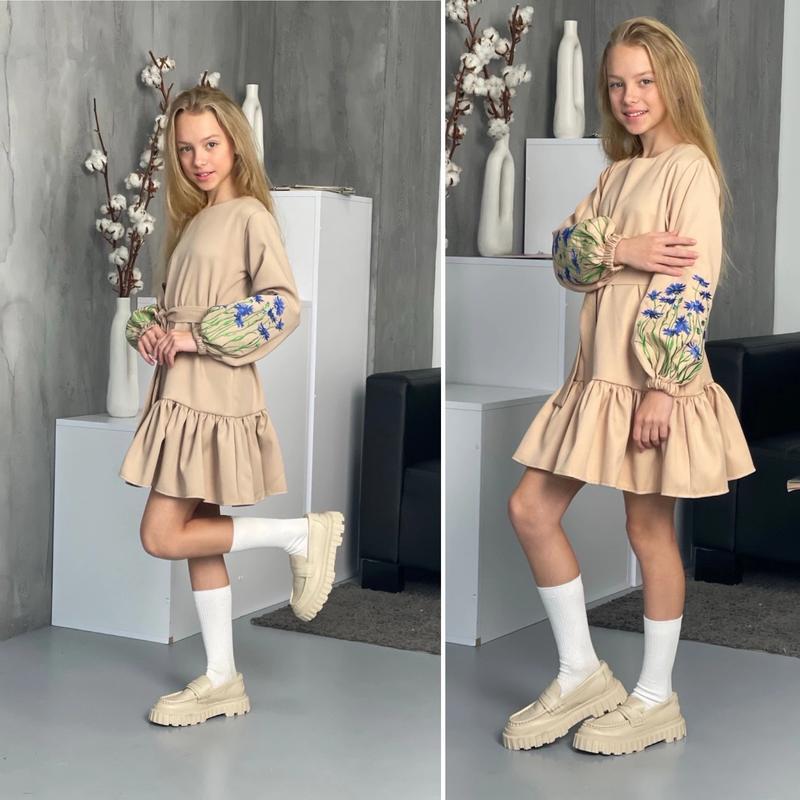 Невероятно красивое и нежное платье На рукавах вышивка Пояс в комплекті Можно носить с поясом и без Тканина костюмний креп Цена 850 грн 128-1 шт 140-1 шт 152-1 шт 164-1 шт размер/пог/рукав/длина 128/38/50/68 140/40/51/71 152/44/52/78 164/46/54/79