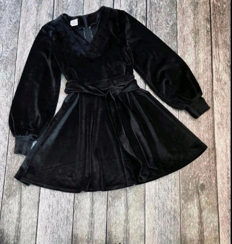 Стильное платье для модниц По спинке к поясу застегивается на молнию. Спереду на запах. Пояс в комплекте. Ткань королевский велюр, мягкий и нежный. Замеры: 140 длина - 69см, рукав от плеча - 52см, полуобхват груди - 38см 146 длина - 75см, рукав от плеча - 54см, полуобхват груди - 39см Мс