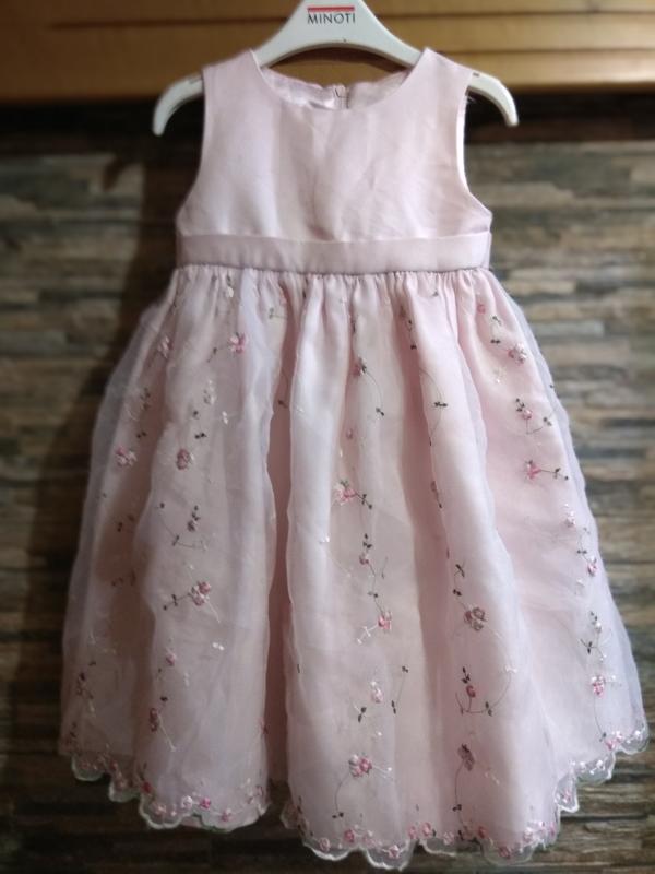 Нарядное нежно розовое платье с вышитыми цветочками по всей юбки. Замеры на фото.