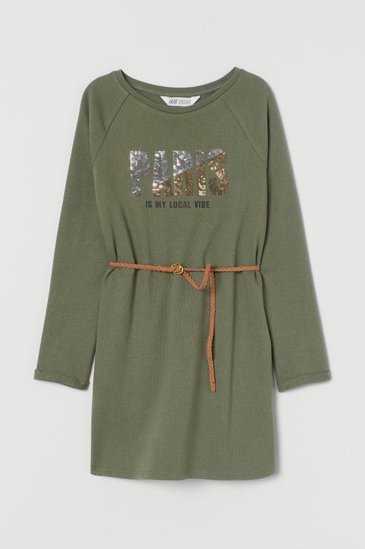 H&M Платье_петелька Платье А-силуэта из тонкого флиса с длинными рукавами реглан, потертыми и прошитыми краями и съемным плетеным поясом из искусственной замши. Закругленный вырез у основания. 🏷️170р, 🏷️170р 📌Длина 82, рукав от горла 68,5, грудь 45,5, таз 49 🛍️ОТПРАВКА КАЖДЫЙ ДЕНЬ 🚀НОВАЯ и 🚜УКР 💵ПОСЛЕ ПОЛНОЙ ОПЛАТЫ 🍿ТОРГА НЕТ