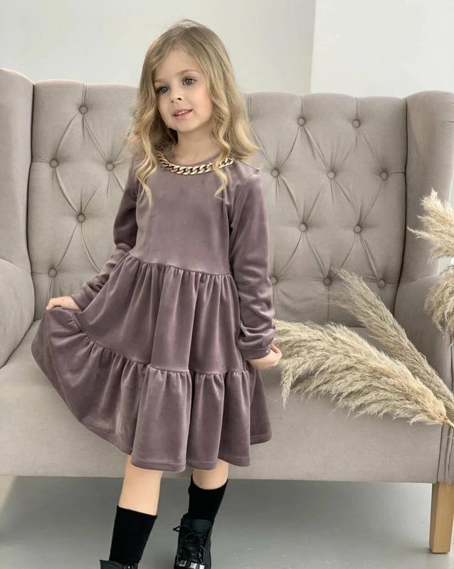 Отличное платье для девочки королевский велюр приятное к телу украшен цепочкой качество люкс 122- пог 32 см, длина 62 см, рукав 44 см Ток