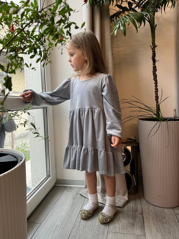Велюрова сукня для юних принцес 👸🏻 Святкове платтячко ніжно сірого кольору - це любов з першого погляду! Матеріал: велюр спорт Розміри: 98-104, орієнтовно 3-4 роки 104-110, орієнтовно 4-5 років Колір: сірий Український бренд 🇺🇦