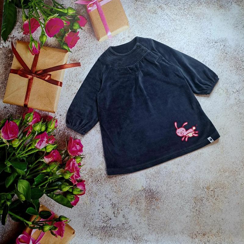Велюровое платье с зайчиком на 1,5-2 года Шир 32 Доаж 48 Рук 35 от горла