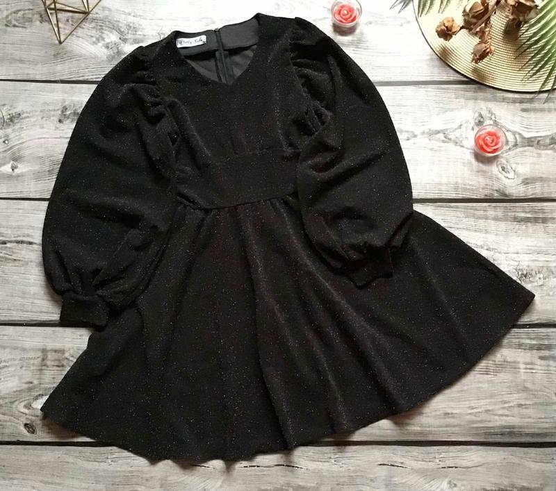 Шикарное праздничное платье Имеет очень красивые рукава. По спинке застегивается на молнию. Ткань - люрекс, приятная к телу. Качество красивое! Замеры: 146 длина - 75см, полуобхват груди - 36см, рукав от плеча - 52см.