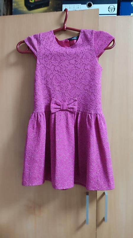 Праздничное платье цвета розовое фуксия,зе серебряной люрексовой нитью.Застегивается сзади на пуговицы Общая длина - 63,5см Полу обхват груди - 30см