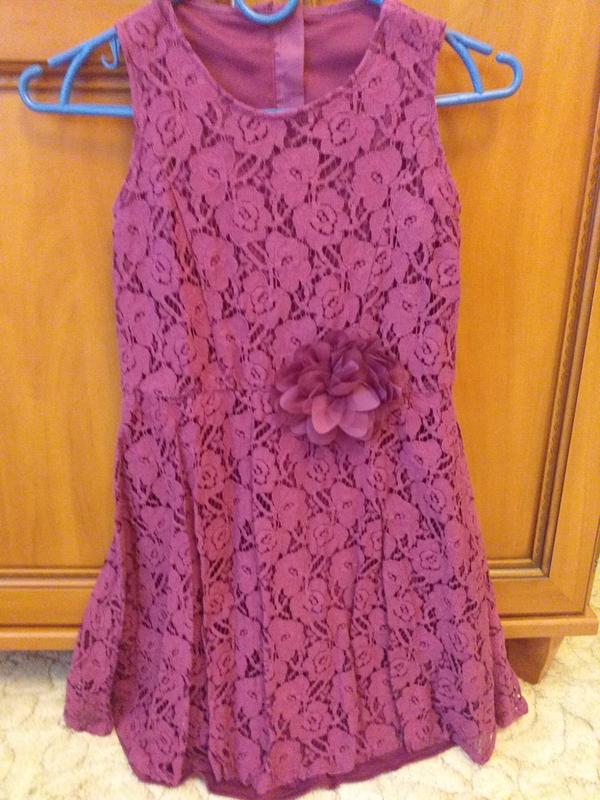 Бордовое платье на подкладке, кружное, украшенное цветком. Для праздничных событий и фотосессии.