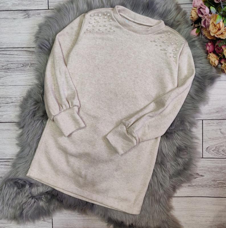 ток Платье прямого силуэта, актуальное в этом сезоне, для девочки подростка Ткань Ангора, не колется мягкая Рукав на широком манжете ви замеры / длина / пог / длина рукава от плеча 128рост-66\41\48 152рост-75\43\51
