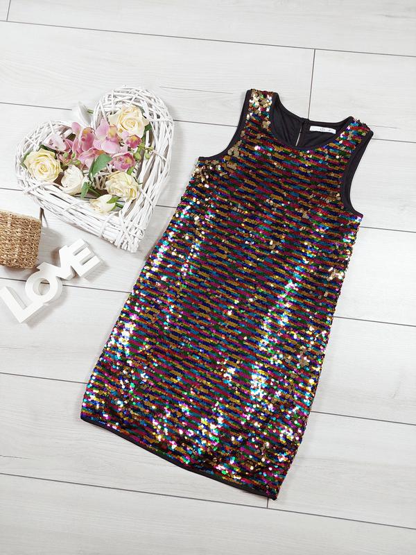 Праздничное платье в пайетку M&S Бирка 10роков зр.146см см. Замеры Стан идеален как новая вещь Длж.78см Пог 37см Поб 43см