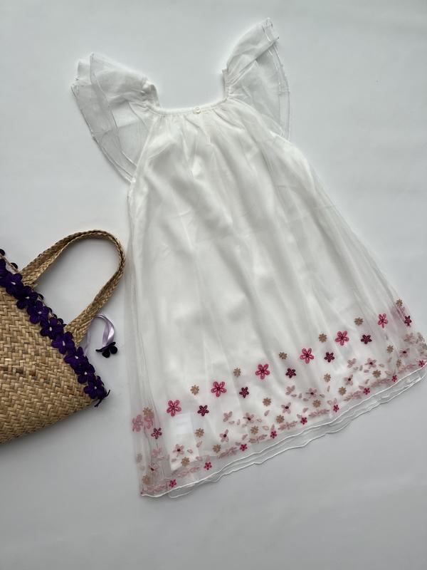 Платье для девочки с вышивкой на сетке легкий нарядный на подкладке белевое очаровательное разм 128, 134 замера по запросудам