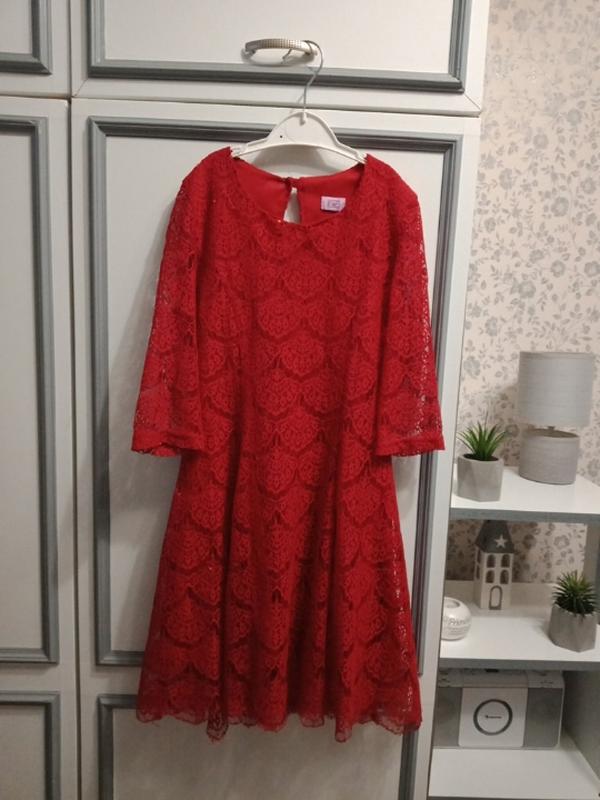 Стильное,красное,гипюровое платье с пайетками на модницу 6-10 лет. По груди 32-37 Длина 72 Рукав 32