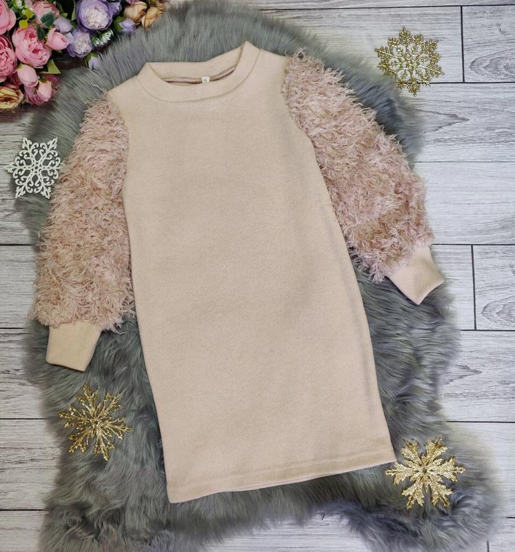 ток В наличии 💐 Теплое нарядное платье для красавиц ткань ангора вязка, классного качества,шикарные рукава травка перышки на сетке замеры: длина/пог/рукав от горловины 116-62/31/46 122-66/32/47 128-69/33/52 134-71/34/50 140-74/35/57 +-2см