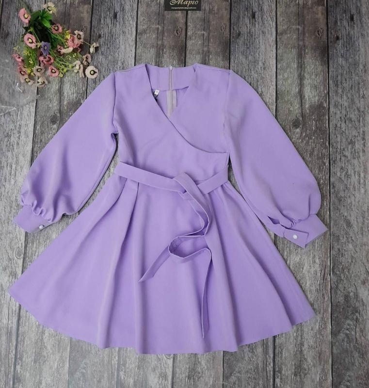 Стильное платье для модниц По спинке к поясу застегивается на молнию. Спереду на запах. Пояс в комплекте. Тканина- костюмна. Замеры: 164 длина - 87см, рукав ид плеча - 63см, полуобхват груди - 45см Мс