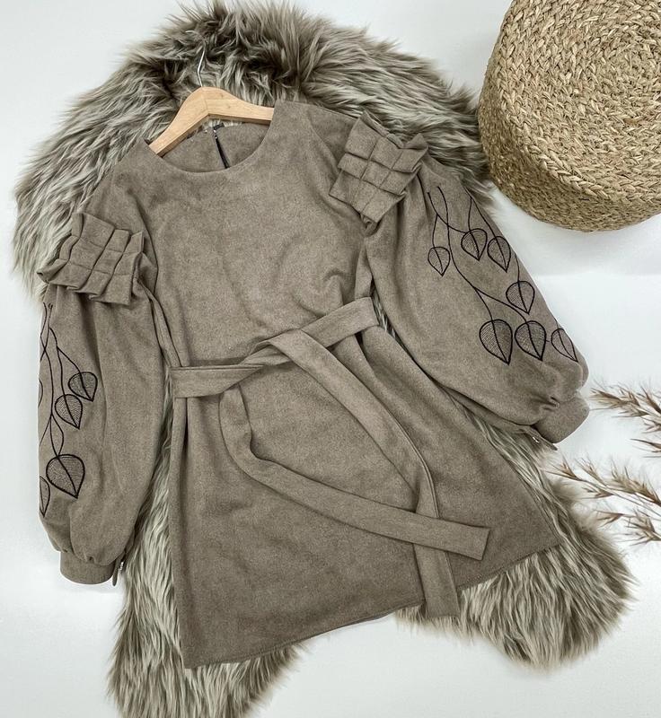арт 4131 Неповторимое платье с настоящей вышивкой ткань замш-диагональ рукава фонариком под поясок манжеты на пуговицах по спинке также застегивается на пуговицу рост/длина/пог/рукав от горловины похибка+-2см 134/66/39/56-1шт