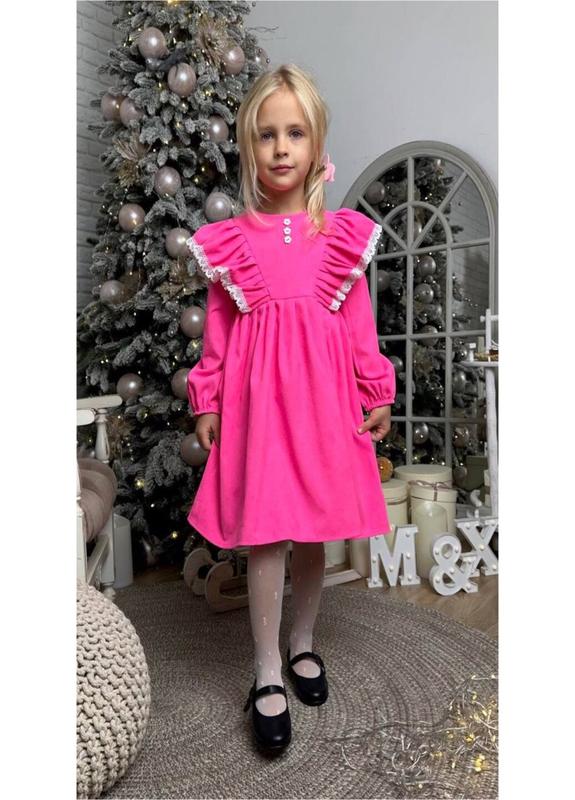 Невероятно красивое и стильное платье для девочки. Изготовлена из приятного на ощупь, качественного микросвободвета. Платье украшено воланчиками и красивым кружевом. На спинке имеются пуговицы. Качество отличное. Производитель Украина