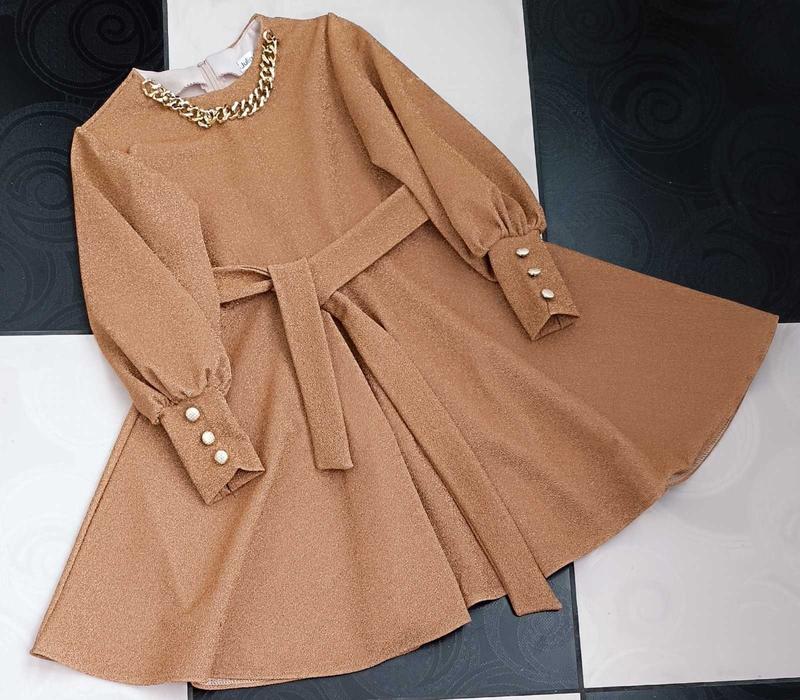 Стильное платье для девочки 140р- длина 75, пог 36, рукав 49 146р- длина 78, пог 37, рукав 51 152р- длина 81, пог 39, рукав 53 158р- длина 85, пог 40, рукав 54 164р- длина 88, пог 42, рукав 57 +-2 см Ткань люрекс на трикотаже с середины приятная к телу (не колется) горловинка украшена цепочкой поясок в комплекте хорошо тянется РЕКОМЕНДУЮ! 👉Безопасной оплаты нет. Кнопку КУПИТЬ не жмите, до уточнения деталей 🚚Новая почта, есть наложка с предоплатой 🚛 Укрпочта- +5грн упаковка (укрпочтой наложка немає❗️) По оплате и доставке уточняйте дополнительно, до покупки! Возврата нет, делайте свой выбор обдуманно. Осматривайте товар в отделении, претензии из дома не рассматриваются! Спасибо что дочитали🤗 конв