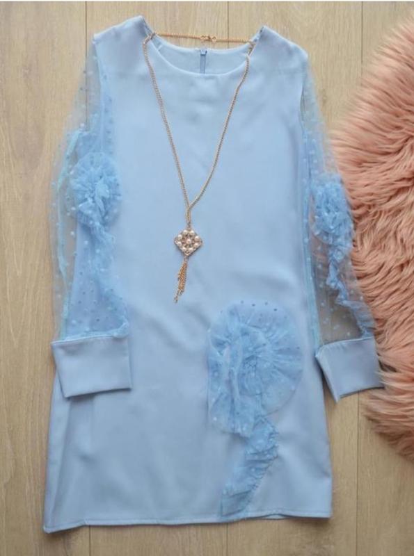 Шикарное платье для торжества, примерно на 9-11лет. Ткань костюмка , рукава и декор из фатина. Красивый нежный голубой цвет. Одето раз ,быстро выросли. Состояние нового