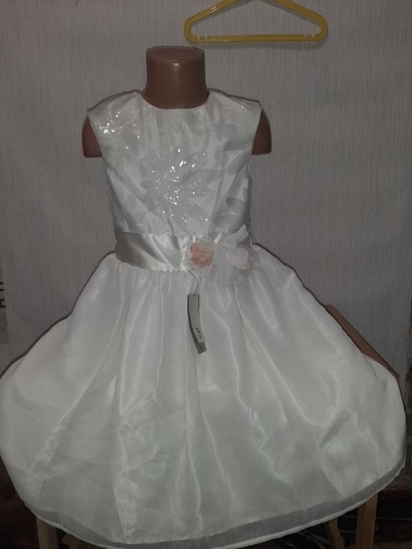 Очень красивое платье в новом состоянии. Цветки на пуговицах, отстегиваются. Верх украшен пайетками, красиво блестит.34 под руками, или 64 полностью, длина 76+- цвет не белый, молочный.