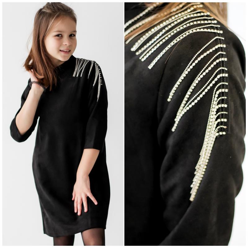 В наличии 💐 Хорошее платье для модницы Ткань замш на дайвинге Красиво тянется Горловинка стоечкой на пуговице Рукав 3/4 Украшены бахромой из страз очень красиво и нарядно смотрится Цена 690 грн длина/пог/рукав 122-68/34/35 128-70/35/37 134-73/37/38 140-77/38/39 146-78/38/41 152-80/39/43 +-2см 122-1шт 128-1 шт 134-1 шт 140-1 шт 146-1 шт 152 1 шт
