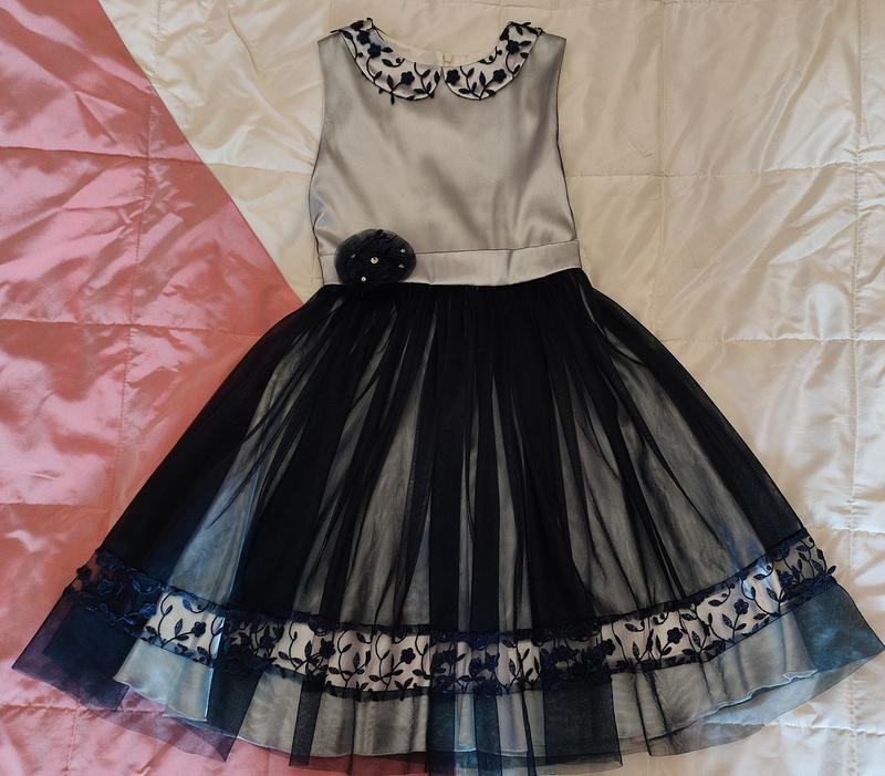 Красивое платье, очень качественный пошив. Длина от плеча до низа - 80 см, длина юбки - 50 см, ширина по поясу - 33 см. Есть еще красивое болеро 200 грн