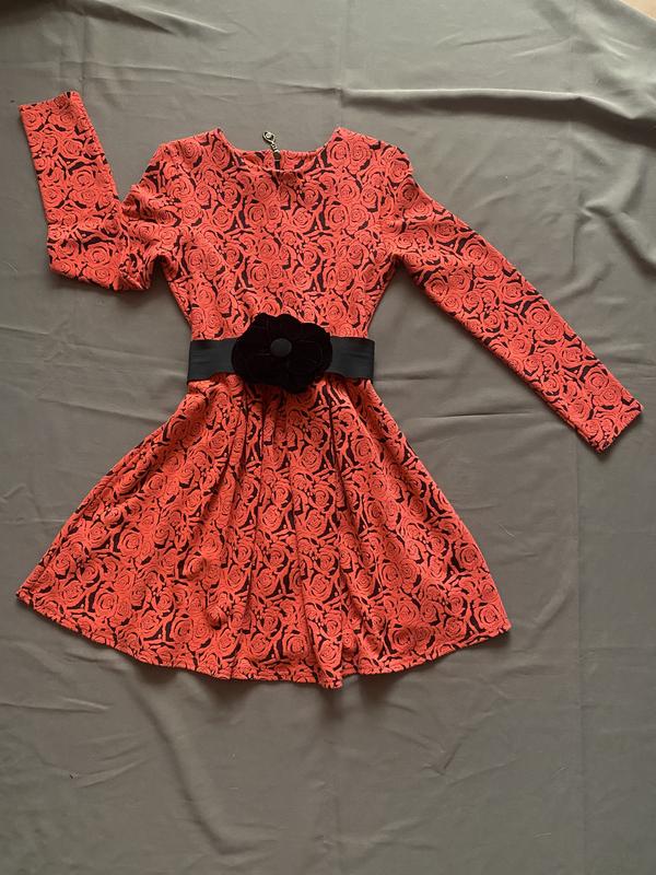Трикотажна коралова сукня на дівчинку 11-12 років. У комплекті чорний пояс-резинка на кнопках, з оксамитовою квіткою. Стан: новий (без паперової бірки) Розмір: на зріст 152 см (краще орієнтуйтеся по замірах) Заміри: довжина 75 см; півобʼєм по груді 35 см; довжина рукава 53 см; плече 9 см; Тканина: трикотаж Колір: кораловий
