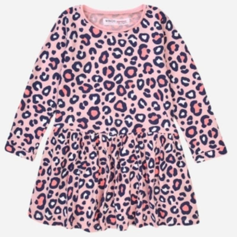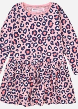 Необычайно яркое платье розового цвета с леопардовым принтом на девочку 2-3 рочки английского бренда Minoti. Состав: 100% коттон
