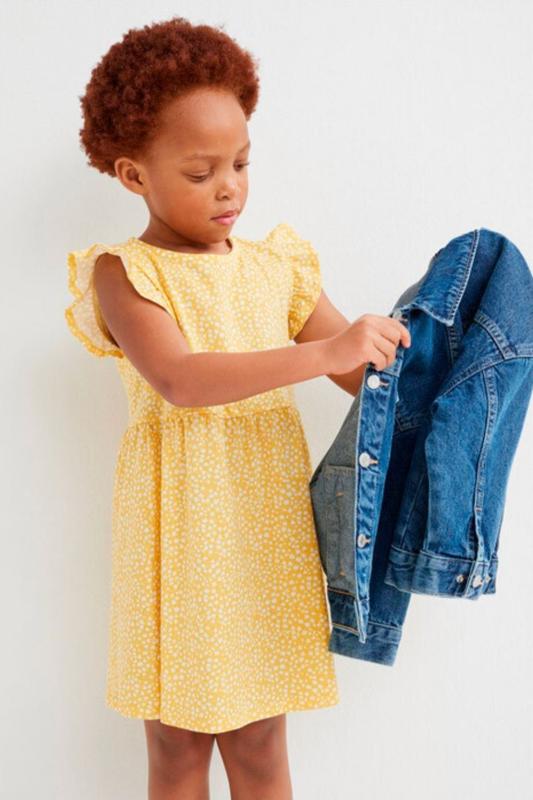 Детское платье платье на девочку от H&M. Платье из мягкого трикотажа из органического хлопка. Рукава с оборками и отрезная талия, с декоративным сборкой. H&M Возраст 8-10 лет Состав: 100% коттон ПОГ - 37см ПОТ - 36см ПОБ - 47см Плечи - 29см Длина - 73см
