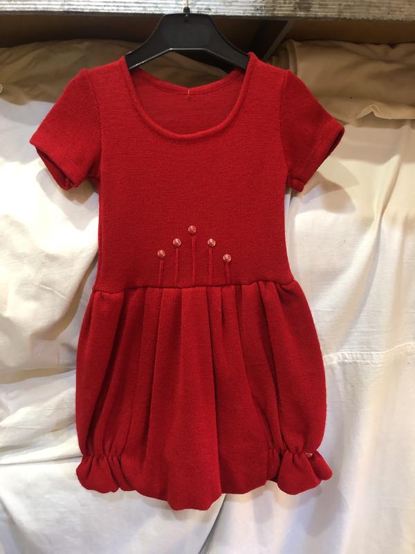 Красное платье на маленькую девочку. Замеры: длина 51 см; полуобхват по груди 25 см; длина рукава 11 см; Тканина: вовна