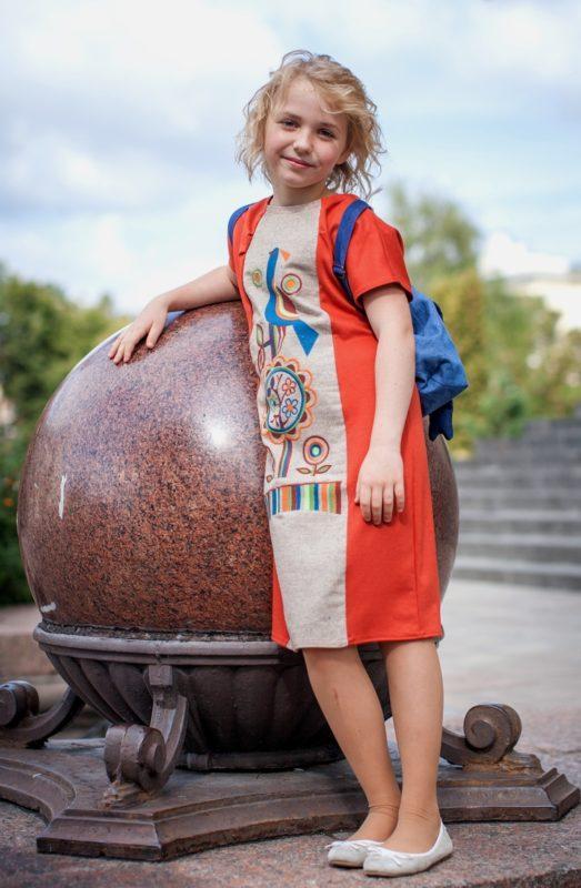 Сукня дитяча "З пташкою" пошита з трикотажу, твіду та бавовни, оздоблена машинним вишиттям. Використано якісні нитки, які не втрачають кольору після прання. Взір для вишиття авторський, розроблений в нашій Етномайстерні за мотивами мозаїк, викладених на українських зупинках. Дорога зі Львова до Тернополя дивує незвичними архітектурними мітками - зупинками із казковими орнаментами. На сірих бетонних стінах красуються мозаїчні панно з квітчастим хитросплетінням, запозичені з місцевої вишивки, коники з карпатських писанок, чарівні птахи з бабусиної казки. Закинуті і понищені - вони досі дивують та приковують увагу. На дорозі зі Львова до Тернополя виділіть по хвилині часу на мистецтво, яке зникає. Доступні розміри: 4 р.,ріст 98-103, ОГ-58 5 р.,ріст 104-115, ОГ-62 5-6 р.,ріст 116-121, ОГ-64 6-7 р.,ріст 122-127, ОГ-68 9-10 р.,ріст 134-149, ОГ-72 12 р.,ріст 150-161, ОГ-76 Сукня дитяча "З пташкою" пошита з трикотажу, твіду та бавовни, оздоблена машинним вишиттям. Використано якісні нитки, які не втрачають кольору після прання. Взір для вишиття авторський, розроблений в нашій Етномайстерні за мотивами мозаїк, викладених на українських зупинках.