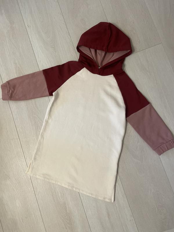 Неймовірно стильна і тепла сукня Розмір по бірці 4-5 р, 110 см , повномірна Стан відмінний Довжина 62 см , пог 41 см , рукав від капюшона 44 см