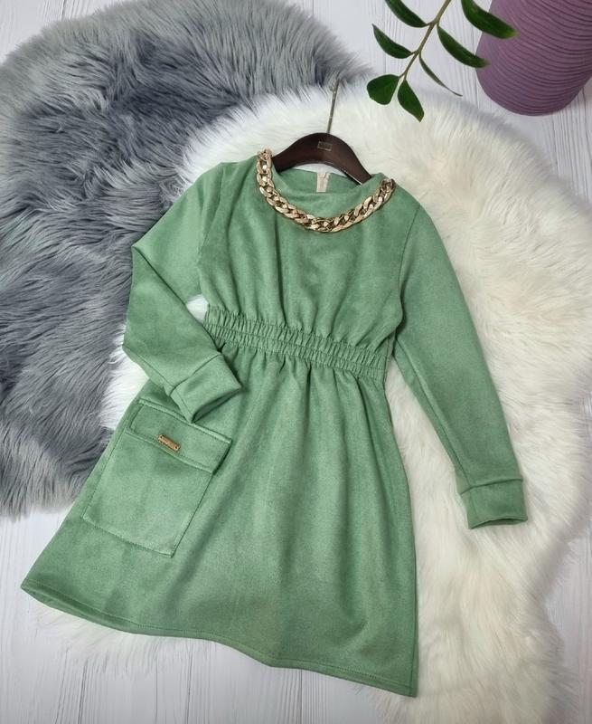 Яскрава сукня конв для юної леді тканина замш на дайвінгу прикрашена ланцюжком в поясі на резинці РЕКОМЕНДУЮ! 128(1 шт)-довжина 65,пог 33,рукав 44