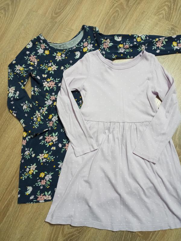 Милые коттоновые платья. Синее в принт и сиреневое в горох (сиреневый более насыщенный, фото не передатал цвет). Заміри на фото. Продам набором.