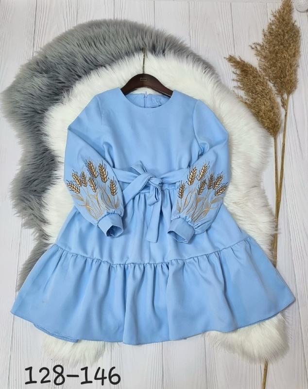 Невероятно красивое и нежное платье На рукавах вышивка ткань костюмка барби по спинке застегивается на молнию, поясок в коплекті 134(1 шт)-длина 71,рукав 48, пог 34 146(1 шт)-длина 76,рукав 52, пог 37 +-2 см