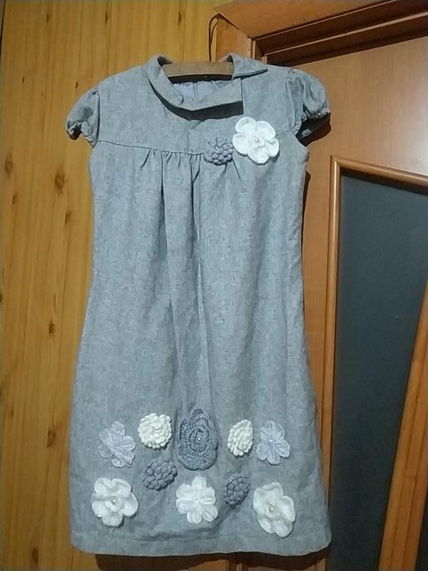 Платье теплое, на подкладке, на рост 152-146 см. В составе 50% шерсть, 50% полиэстер. Украшено объемными цветами, очень красивое и эффектное. Замеры по запросу.