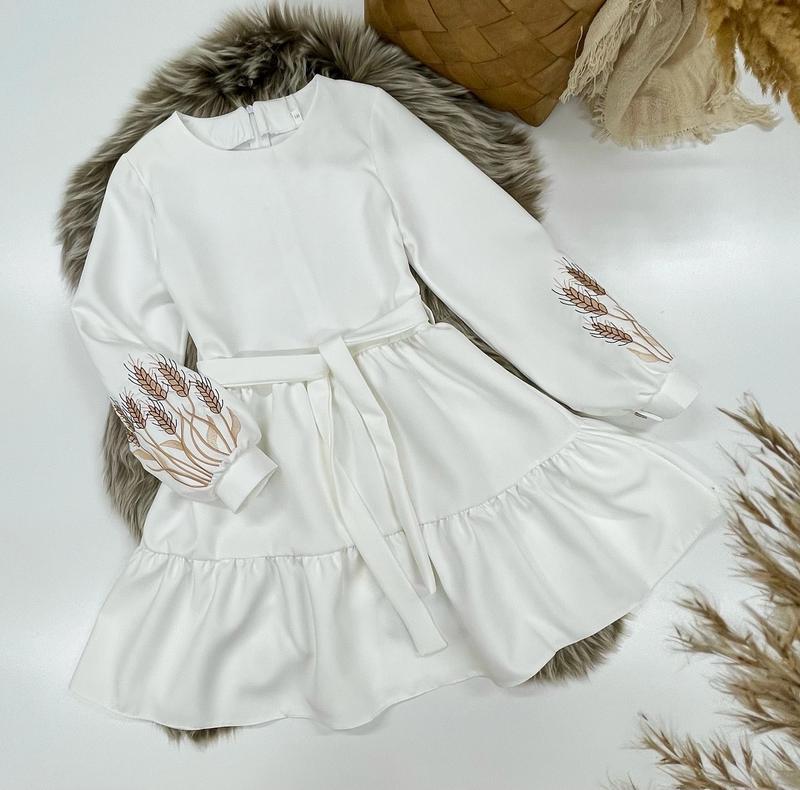 Таня арт 4189 Невероятно красивое и нежное платье На рукавах настоящая вышивка Поясок в комплекте Можно носить с поясом и без по спинке глубокая молния Тканина костюмний креп рекомендую!!! рост/длина/пог/рукав от плеча похибка+-2см 146/78/37/53-1шт 152/80/38/55-2шт 158/85/40/59-2шт