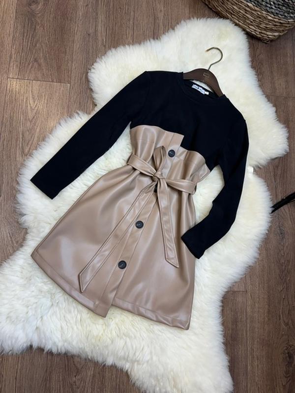 Найулюбленіша моделька сукні наших модниць ♥️ Ваша красуня буде виглядати неймовірно стильно і витончено у такій сукні тканина екошкіра і термотрикотаж прикрашена ґудзиками, поясок у комплекті дуже гарно сидить по фігурі ціна 840 грн 140-2шт 146-2шт 152-2шт 158-2шт 164-2шт