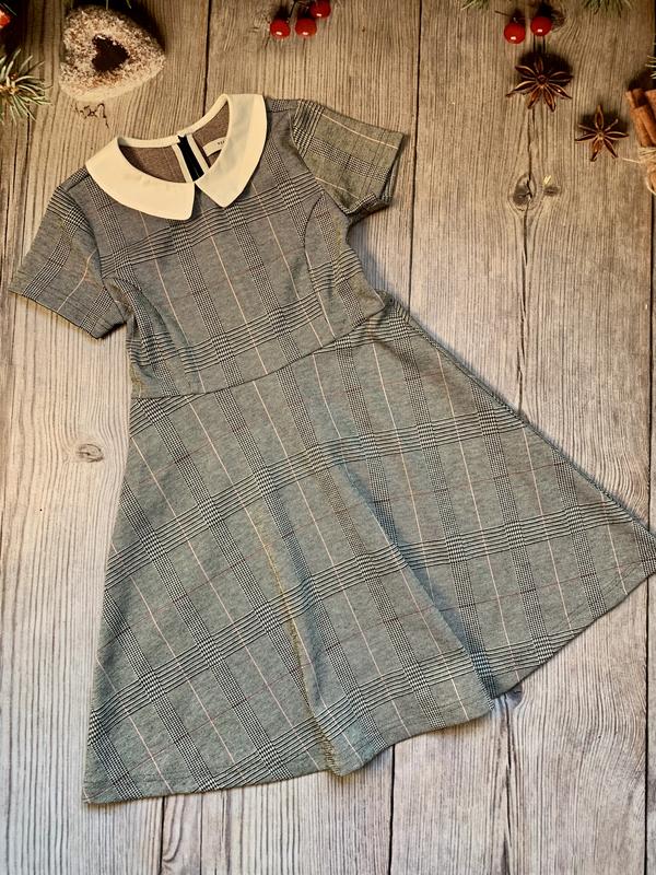 Красивое платье с воротничком Reserver 7/8 лет - 80 % полиестер - 20% Коттон Приятное на ощуп плотное красиво держит складку на юбке Длина 67 см ширина под ручками 31 см