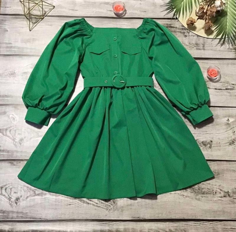 Стильное платье для модниц По переду пуговицы декоративные. Поясок в комплекте. Тканина- костюмна. Замеры: 146 длина - 74см, рукав - 55см, полуобхват груди - 36см