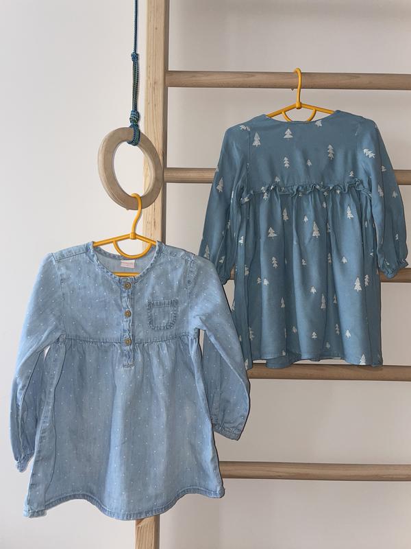 Набір платтячок, 92-98 см, всі в хорошому стані, але на двох є нюанс, на білому, на рукаві є невеличка плямка, і в синьому з ялинками на грудях малесенька Сіре з білим це primark, синє з ялинками m&s, джинсове smile
