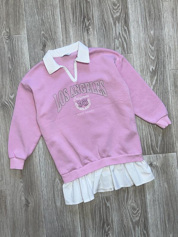Очаровательное платье-свитшот на баечке в нежном розовом цвете станет прекрасным дополнением к гардеробу вашей маленькой модницы. Это удобное и стильное платье идеально подходит для повседневной носки, обеспечивая комфорт и непринужденный стиль. Уютная баечка и мягкий материал создают приятное ощущение на теле, а розовый цвет придает образу нежность и женственность. Позвольте вашей девочке чувствовать себя уютно и стильно в этом прекрасном платье! Состояние новое без бирки 🏷️Primark 10-11 лет/146 Длина 70(59). ПОГ 50. Рукав от шеи 60