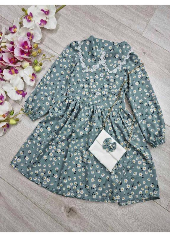 Великолепное воздушное платье в оливковом цвете 💐💐💐💐💐💐💐💐 Пышная юбка, в рукавах небольшая резиночка,позади есть маленькая пуговица,гарным дополнением является сумочка, которая идет в комплекте ✨😍✨😍✨ Тканина: Софт 💞 Производитель : Украина 🇺🇦