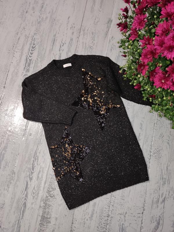 в идеальном состоянии, приятная к телу, платье блестящая пайетки тоже блестящие, одним словом для маленькой звездочки. Рукав и низ идет на манжете. долж.-53 п.о.г.-32 п.о.по низу-29 рукав от шеи-40