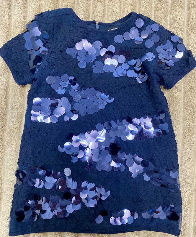 Платье темно синего цвета с блестками, застежка на потайной молнии, бренд Reserved, размер 92.